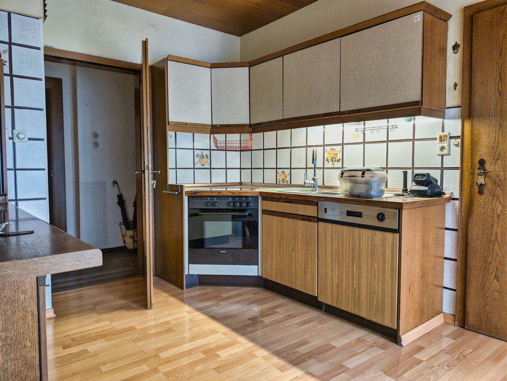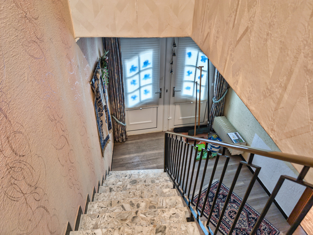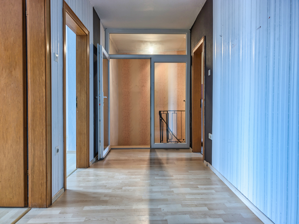 Ein besonderes Highlight ist die Marmortreppe, die ins Dachgeschoss führt – ein Badezimmer und drei weitere lichtdurchflutete Räume. Auch das Erdgeschoss bietet eine vollwertige Einbauküche und ist mit hochwertigen Bodenbelägen aus Fliesen, Parkett und Laminat ausgestattet. Das Bad wurde 2021 renoviert.