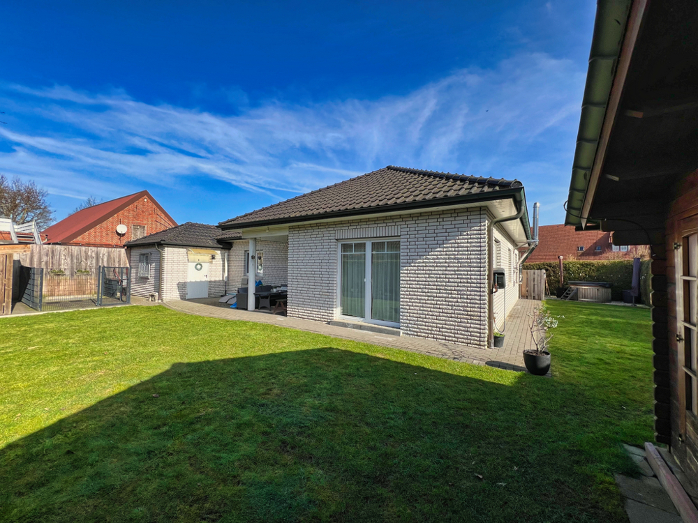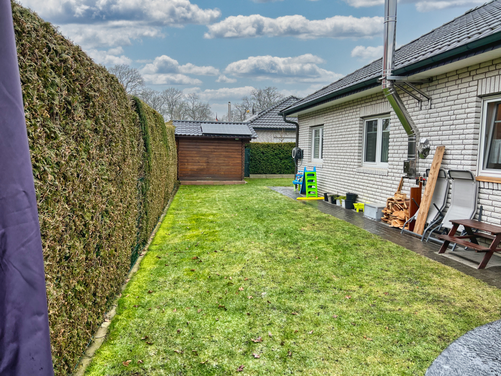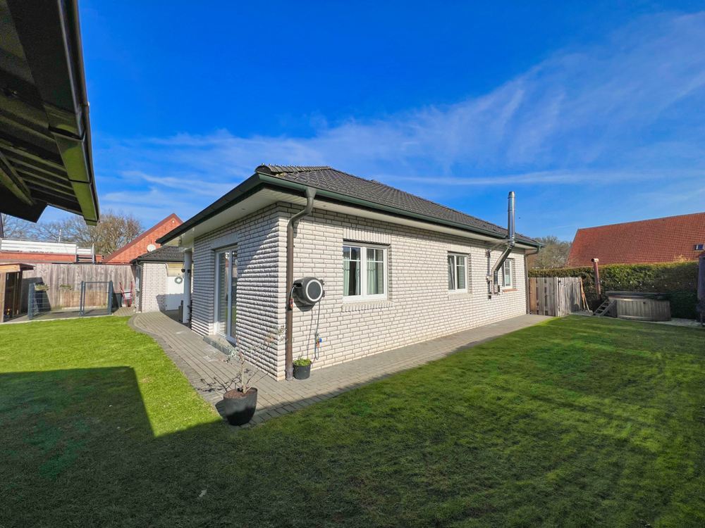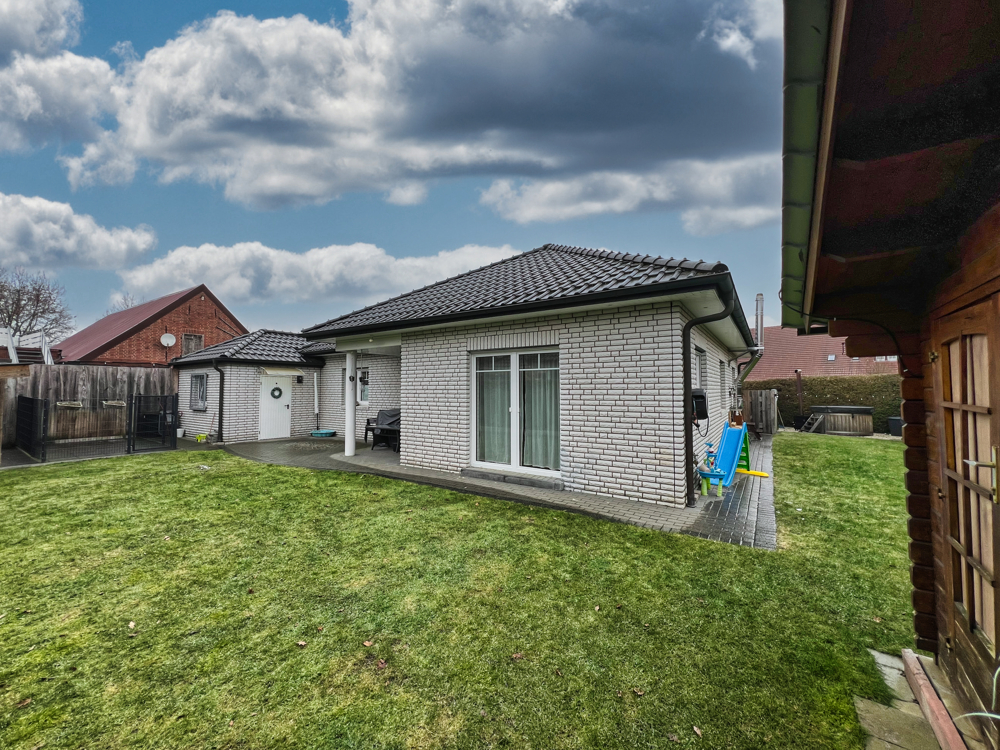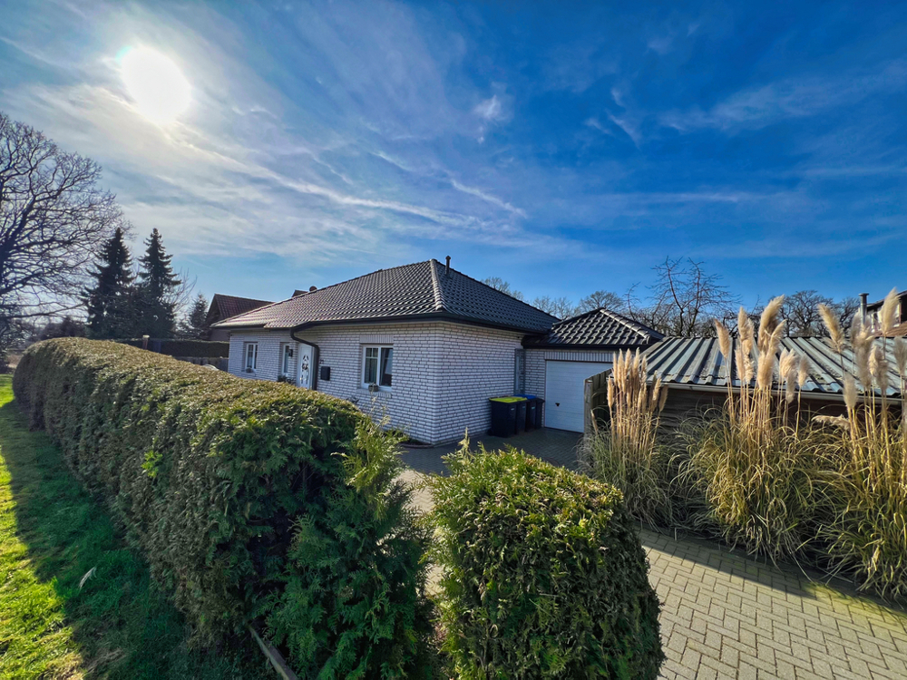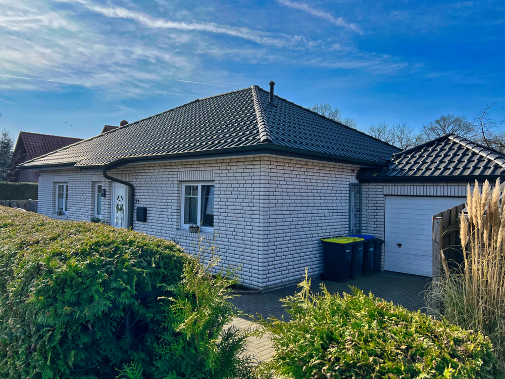 Komfortables Wohnen auf einer Ebene - ideal für Paare und Familien. Sie können sich hier auf einer Wohnfläche von ca. 116 m² häuslich einrichten. Der Bungalow ist aus dem Jahr 2006 und überzeugt mit hellen Zimmern und einer durchdachten Raumaufteilung. Auch das Tageslichtbad lässt keine Wünsche offen. Es verfügt über eine Badewanne und eine Dusche. Somit ist für jeden das Richtige dabei. Die Beheizung des Hauses erfolgt mittels Gaszentralheizung. Im Wohnzimmer gibt es außerdem einen Kachelofen - perfekt für kalte Winter- und Herbsttage. In den Sommermonaten können Sie das Sofa hinter sich lassen und die Sonne auf der Terrasse in Westausrichtung genießen. Ebenfalls praktisch: Von der Garage, die mit einem elektrischen Tor ausgestattet ist, können Sie direkt den Hauswirtschaftsraum und den Garten betretet.