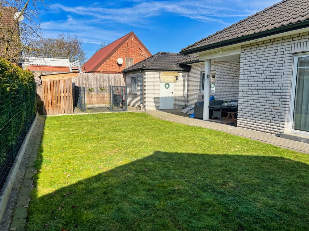 Natürlich ist es praktisch, dass der Bungalow komplett ebenerdig ist. Nicht weniger praktisch ist es, dass ein Supermarkt, eine Pizzeria, eine Sparkasse sowie ein Friseur sich in unmittelbarer Nähe zu diesem Haus befinden und entsprechend bequem zu Fuß zu erreichen sind. Die örtliche Grundschule und der Kindergarten sind nur ca. 450 m entfernt. Und somit ebenso schnell erreichbar.